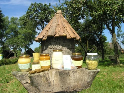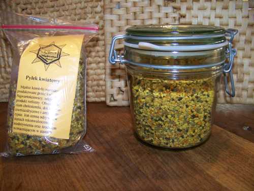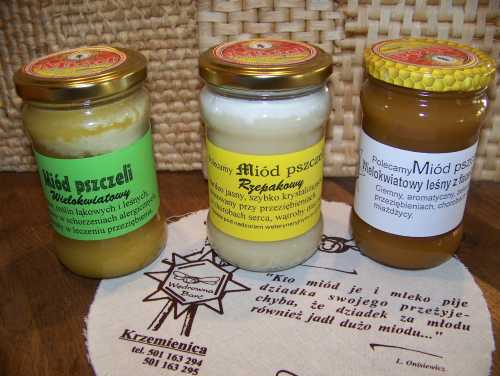 ![]() * miód rzepakowy - bardzo jasny, szybko krystalizujcy się, mazisty. Stosowany w leczeniu miażdżycy, chorobach wątroby i dróg żółciowych oraz w stanach zapalnych górnych dróg oddechowych. Polecany rekonwalescentom dla poprawy ogólnej kondycji organizmu. Zawiera prawie wyłącznie cukry proste, ma właściwosci detoksykacyjne. * miód lipowy - wyróżnia się silnym aromatem, w smaku ostry i bardzo słodki. Po krystalizacji jest drobnoziarnisty, złocisto-żółty. Stosowany w leczeniu przeziębień, angin, zapalenia zatok i oskrzeli, w chorobach dróg moczowych, schorzeń reumatycznych i nerwic. * miód wielokwiatowy- różny w zależnosci od składu nektaru. Konsystencja średnioziarnista, smak słodki, barwa od jasnoszarej do herbacianej. Stosowany w leczeniu schorzeń alergicznych i przeziębień. * miód gryczany - bardzo aromatyczny, o zabarwieniu ciemnym do brunatnego. Po krystalizacji brązowy i gruboziarnisty. Smak ostry, słodki, lekko piekący. Stosowany w leczeniu schorzeń układu krążenia i miażdżycy. Zawiera dużo magnezu i witaminy C. * miód wrzosowy - zabarwienie czerwono-brunatne, konsystencja średnio -galaretowata, mało słodki, lekko gorzkawy, ostry. Stosowany w leczeniu dróg moczowych, prostaty, kamicy nerkowej, zapalenia jelit i biegunek. Nazywany "przedłużaczem życia". UWAGA! Aby miód był w pełni przyswojony przez organizm należy łyżeczkę od herbaty miodu zalać wieczorem objętością pół szklanki wody (mineralnej niegazowanej lub przegotowanej) o temperaturze pokojowej i pozostawić do rana. W tym czasie nastąpi rozpad cukrów złożonych na proste. Rano, na czczo, wypić napój małymi łykami, aby miód już w jamie ustnej dostał się przez śluzówkę do krwi, wówczas działanie lecznicze miodu wzrasta nawet ponad 100 razy. ![]() * kit pszczeli (propolis) - ma działanie przeciwdrobnoustrojowe, bakteriostatyczne, grzybobójcze, antywirusowe i bakteriobójcze. Wykazano jego działanie hamujące na wirusy grypy i żółtaczki zakaźnej. Propolis znakomicie pokrywa zwiększone zapotrzebowanie na substraty budulcowe w okresie wzrostu i rekonwalescencji, jest również najbezpieczniejszym sposobem uzupełniania ustrojowych niedoborów żelaza drogą doustną. Doskonały w leczeniu chorób: skóry, jamy ustnej i zębów, uszu, nosa i gardła, płuc i oskrzeli, serca i naczyń krwionośnych (np. nadciśnienie, żylaki, miażdżyca), przewodu pokarmowego (np. wrzody), kości i stawów, układu nerwowo-mięśniowego, kobiecych (klimakterium), układu moczowo-płciowego (np.prostata), gruczołów dokrewnych (np. .tarczyca, cukrzyca wtórna), wzroku (np. zapalenie spojówek), układu psychonerwowego (np.depresja, nerwica), geriatrycznych. Tynktura propolisowa (20%) Rozdrobnić 50g propolisu i zalać 0,25l spirytusu 96%. Wstrząsać 2 razy dziennie i po 2 tygodniach zlać przezroczystą ciecz do ciemnej butelki. Pozostały osad (przechowywany w ciemnym i chłodnym miejscu) można stosować jako maść przy skaleczeniach. Stosować: dorośli - 15-30 kropli dziennie, dzieci - 5-10 kropli dziennie. Kuracja nie powinna trwać dłużej niż 3-miesiące z przerwą 2-3 miesięczną. Zaczynać od małej dawki i w ciągu 4 dni dochodzić do właściwej. Przed rozpoczęciem kuracji sprawdź, czy nie jesteś uczulony na propolis. ![]() * pyłek kwiatowy - męskie komórki rozrodcze produkowane przez kwiaty. Najwartościowszy, odżywczy produkt roślinny. Obniża poziom cholesterolu, działa przeciwmiażdżycowo i antybakteryjnie. Jest cenną odżywką w stanach rekonwalescencji i niedożywienia oraz środkiem wzmacniającym w stanach wyczerpania i zmęczenia psychofizycznego. Wzmaga wytwarzanie przeciwciał, przyśpiesza leczenie zakażeń. Pyłek działa osłaniająco i odtruwająco na komórkę wątrobową. Poprawia trawienie, reguluje krążenie krwi, działa uspokajająco i przeciwbólowo. Zawiera: białko 25-50%, cukier 15-35%, tłuszcze 2-7%, kwasy nukleinowe do 5%, sterole 0,3-3%, flawonidy 2-4%, popiół 3-5%, witaminy: A, E, B1, B2, B3, B6, B12, C, PP, kwas foliowy, bioflawonidy i sole mineralne. Stosowanie: 1 łyżkę stołową pyłku zamoczyć w wodzie i po 2 godz. zebrać pływające po wierzchu łupinki i zamrozić, po rozmrożeniu spożyć. Tak przygotowany pyłek zawiera samą plazmę przyswajalną w 90% a nie w 30%. Dawkowanie: dorośli - 2 czubate łyżeczki dziennie, dzieci - połowa w/w dawki. Kuracja nie powinna trwać dłużej niż 3-miesiące z przerwą 2-3 miesięczną. ![]() * świece z wosku pszczelego - spalają się bezdymowo, doskonale jonizują powietrze w pomieszczeniach z telewizorami i komputerami. Mają działanie bakteriobójcze, likwidują uboczne skutki szkodliwego działania dymu tytoniowego. Olejki eteryczne i substancje zapachowe działają kojąco na układ oddechowy i nerwowy.